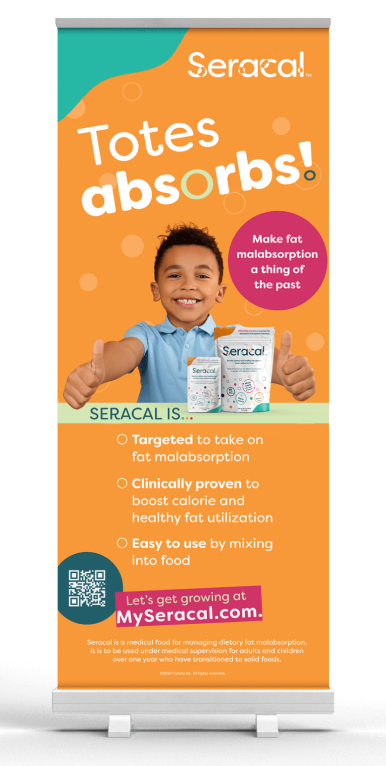 We created a suite of trade show materials, featuring fun copy like “Totes Absorbs,” to reinforce Seracal’s unique role in tackling malabsorption. With an approachable, conversational tone, we ensured that every piece is as relatable and easy to understand as the product itself.
